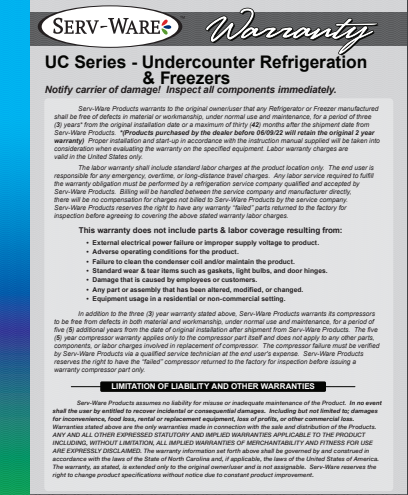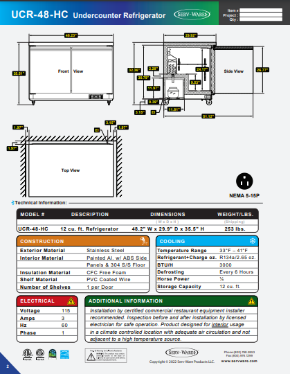 item : Serv-Ware Undercounter Refrigerator UCR-48-HC 12 cu. ft.