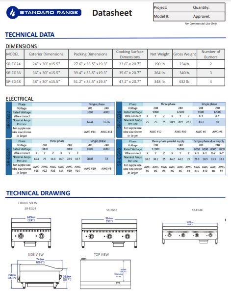 Item: Standard Range SR-EG24 24″ Commercial Electric Thermostatic Countertop Griddle, 208-240V
